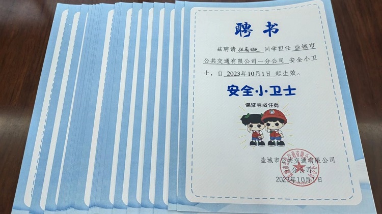 活动最后,车队向孩子们颁发了“安全小卫士”聘书,正式聘请他们成为安全监督员,持证上岗的他们将在日常生活中对驾驶员父母进行“安全叮嘱”和“询问监督”。