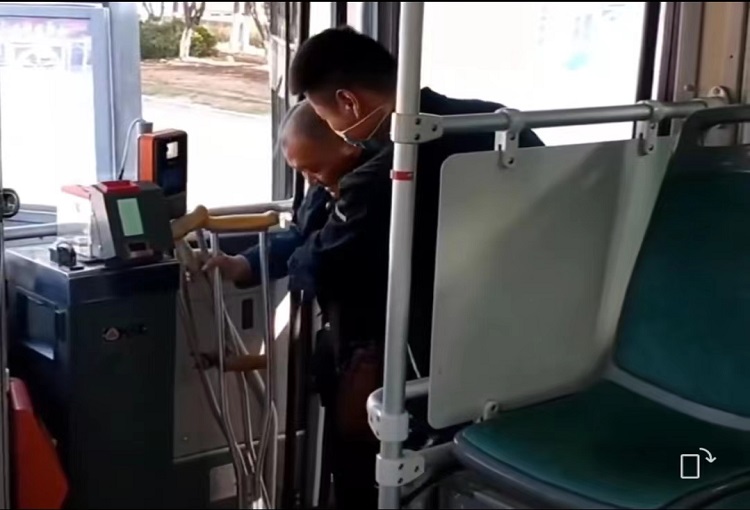 据29路公交车驾驶员陈阳回忆,9月26日上午,他执行营运任务到新嘉源工业邻里中心站台时,看到有位老人拄着一双拐杖正在候车,看到车子进站,老人正艰难的踱步准备上车。陈阳见状立即主动下车搀扶,小心翼翼地将老人扶到车上,并安排其在爱心座位就座后才放心回到驾驶室营运。老人在开发区管委会下车又主动搀扶帮忙下车。陈阳的暖心的服务被同在车内的乘客捕捉到,并拍了下来。