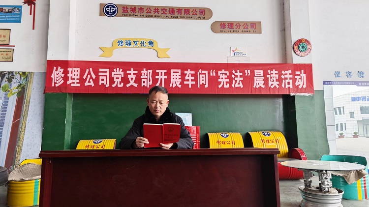 修理公司党支部开展车间“宪法”晨读活动