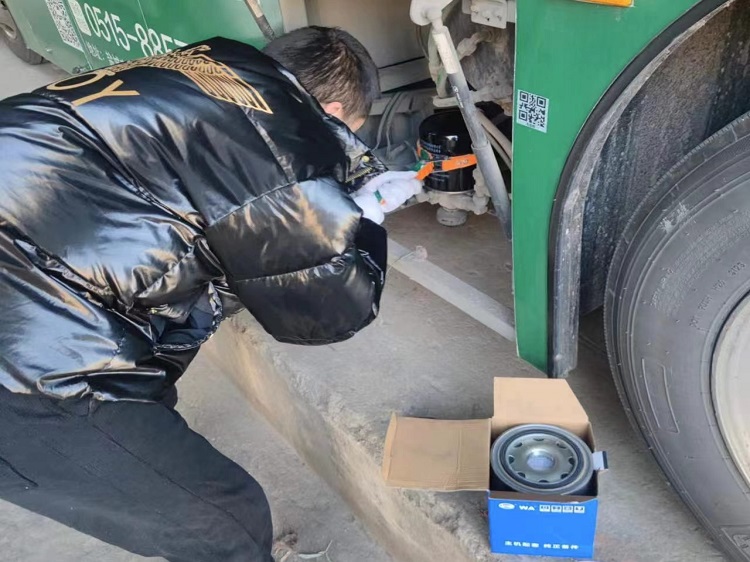 夜间公交车回场后,修理人员冒着零下几度的低温,对每一辆公交车进行更换防冻液、干燥筒,并检查气路管路排污情况,防止因冰冻导致车辆趴窝,保障市民正常乘坐公交车出行。