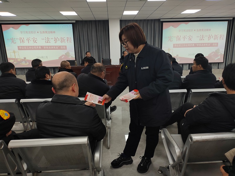 此次普法宣传活动的开展,进一步加深了职工对宪法的认识,帮助职工牢固树立尊法学法守法用法的良好意识。下一步,市公交三分公司将不断创新工作方式与方法,纵深推进法治宣传教育工作,切实从源头有效防范化解风险隐患,为“平安公交”建设提供坚强的法治保障。