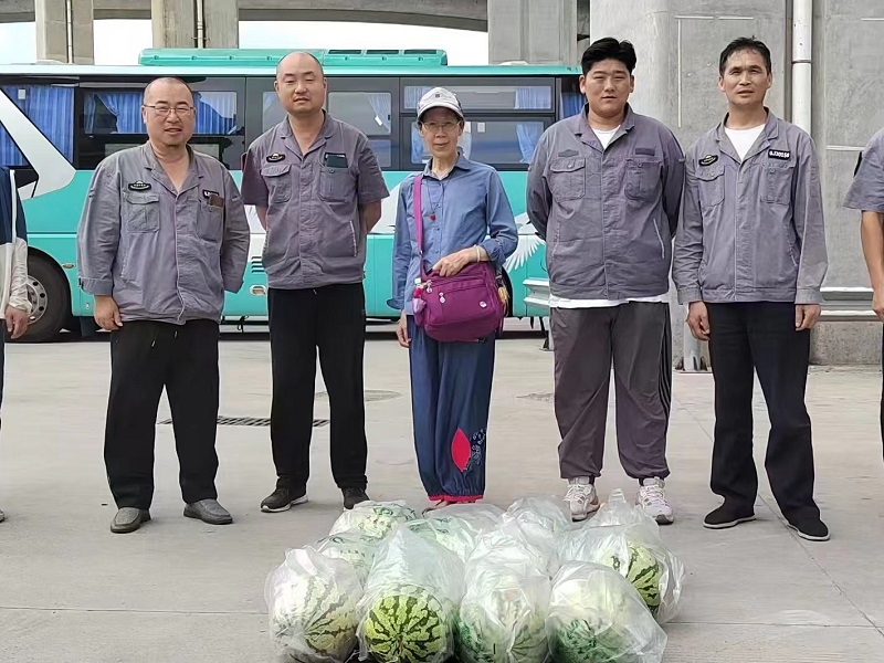 “师傅们,辛苦了!这么热的天气,感谢你们坚守岗位,为我们乘客服务,快吃些西瓜解解渴吧……”近日,一位老奶奶顶着烈日、冒着酷暑,将十余个鲜甜的大西瓜送到青年路公交枢纽,为高温下奋战一线的驾驶员们送来一份“清凉”。