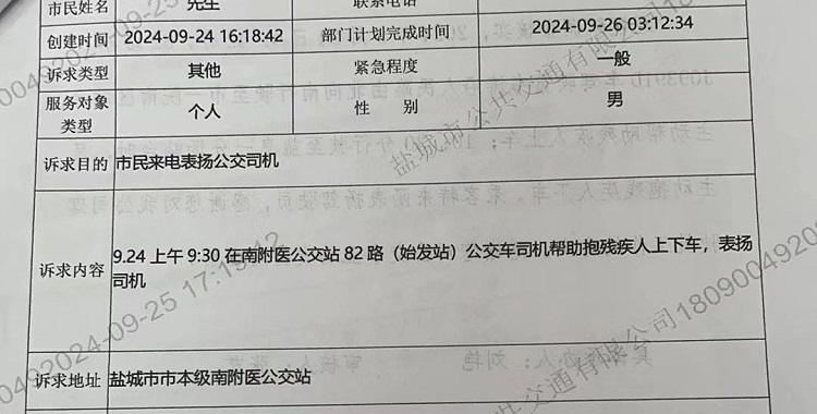 公交车是城市文明的窗口,公交人则是城市文明的践行者。公交驾驶员用优质服务彰显职业素养,传递社会正能量。近日,二分公司收到多起表扬工单,表扬驾驶员在营运期间展现出的优质服务暖人心、获点赞。