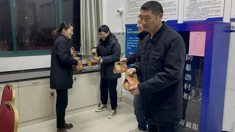 元旦清晨,分公司管理人员早早来到调度中心回车场,为在岗人员送上寓意“苹苹”安安、“橙”心如意的小礼品,叮嘱驾驶员增强安全服务意识。