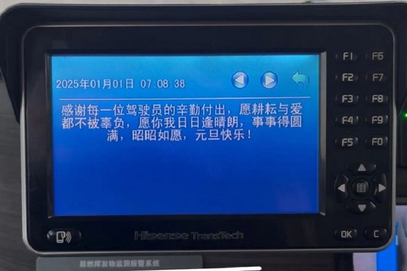 “每天开车虽然辛苦,但公司一直记挂着我们,这让我们心里特别暖,新的一年干活更有劲儿!”一位驾驶员师傅感慨地说道。同时,车载机上也为驾驶员们播放了隐藏的温暖祝福语,祝福大家新年快乐、事事圆满!