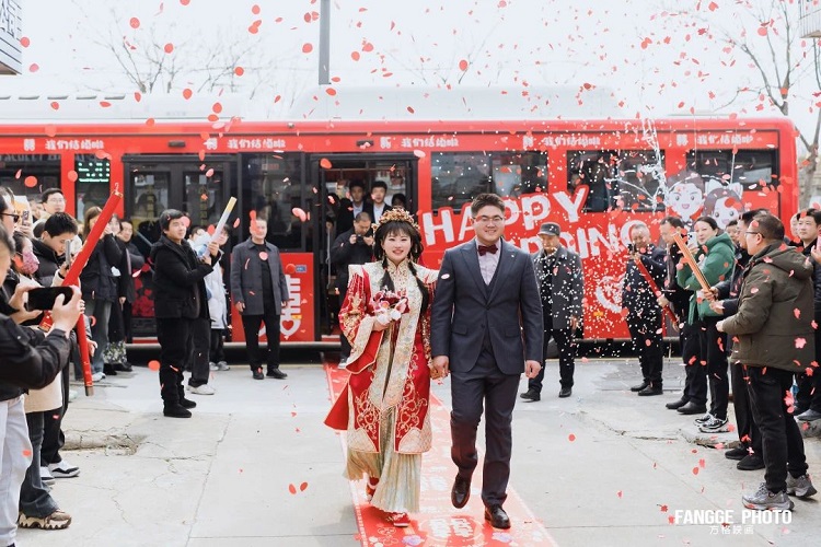 家人对张超薇的想法也十分支持,公交婚车能容纳更多亲友,尤其是外地同学可以在接亲途中一起互动,玩游戏、唱歌、聊天,让婚礼更加热闹有趣,特别又有意义。