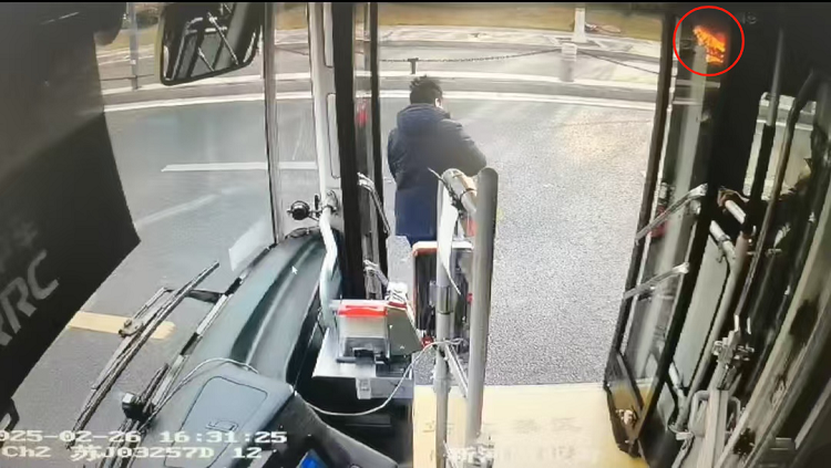 2月26日下午4点32左右,朱师傅驾驶12路公交车由北向南行驶至水街附近时,远远看到前方有浓烟升起,驶近后发现非机动车道上有一辆电瓶车正在自燃,火势凶猛,情况危急朱师傅没有丝毫犹豫,他立即拉好手刹,将公交车稳稳停好,随后拿起车载灭火器冲向自燃的电瓶车。