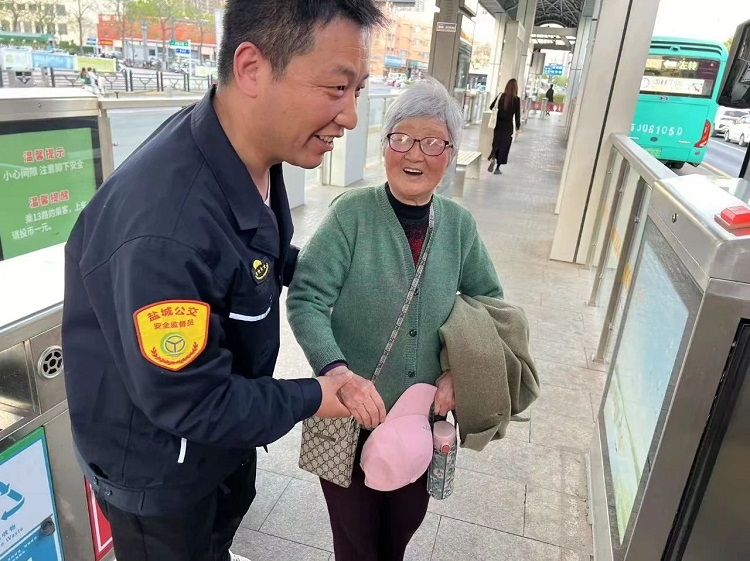 孙建杏曾是一名旅游专线双层巴士的驾驶员,载着乘客穿梭于盐城的各大景点。在旅游专线工作的日子里,他始终严格要求自己,着装统一、佩戴手套,用文明用语与每一位乘客交流。面对车身高大、转弯半径大且盲区多的挑战,他摸索出一套“稳、缓、柔”的驾驶习惯:提前预判路况、减速避让盲区,甚至根据导乘员的讲解节奏灵活调整车速,让乘客既能欣赏到沿途的美景,又能感受到旅途的惬意。