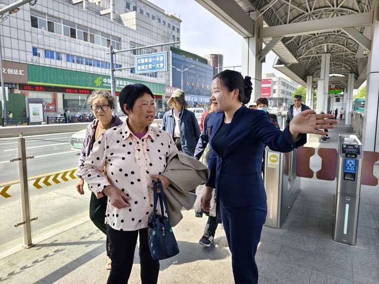 茆春燕熟稔站台的每一处细节,从设施设备的日常巡检、车辆停靠的合理安排到突发状况的应急处理,每一步都印刻着其对安全的执着。面对乘客,她热情周到,耐心解答各类问询,为初来乍到的旅客指引方向,为携带行李的乘客提供帮助,更用专业与耐心为乘客办理公交IC卡业务……她的细致让便捷出行触手可及。遇到突发状况,她也总能迅速反应、冷静应对,凭借丰富经验及时化解危机,守护好站台秩序与乘客安全。在盐阜饭店BRT站台的十年积淀,让她练就了“百问不厌”的包容,也收获了无数声真挚的“谢谢”。
