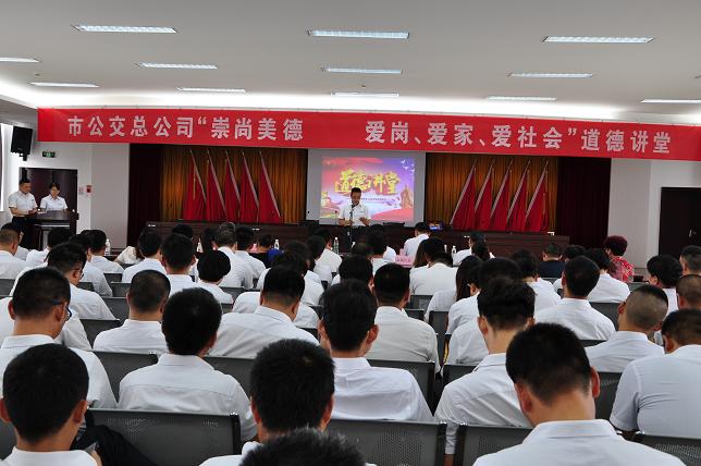8月10日下午,市公交总公司举办了“崇尚美德——爱岗、爱家、爱社会”主题道德讲堂。下午三点,道德讲堂在优美的歌声中拉开帷幕,全体参会人员齐声高唱《走进新时代》,在歌声中感受改革开放给祖国带来日新月异的变化,表达对祖国的热爱和自豪。随后观看了一部短片,该视频讲述的是我司K202线的驾乘人员真诚服务乘客,送心脏病突发的老人就医而被媒体宣传报道的事迹。