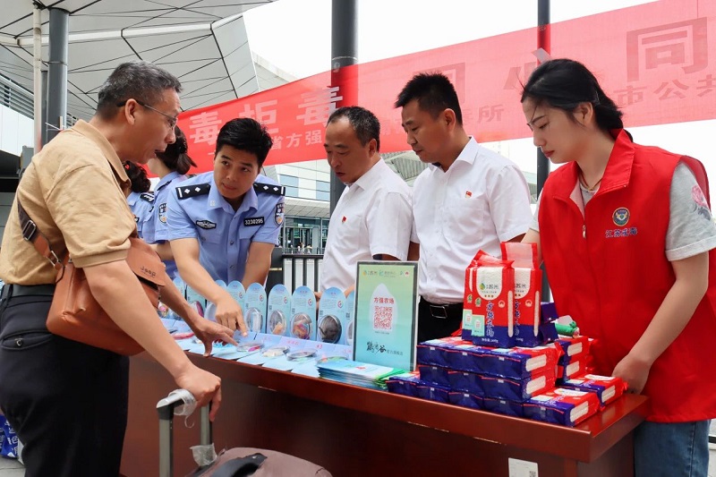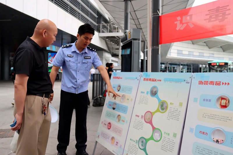 上午9时,禁毒宣传活动在高铁站西广场正式启动,采用“现场定点宣传+公交流动课堂”双轨并行的形式,把禁毒知识传递给每一位市民乘客。