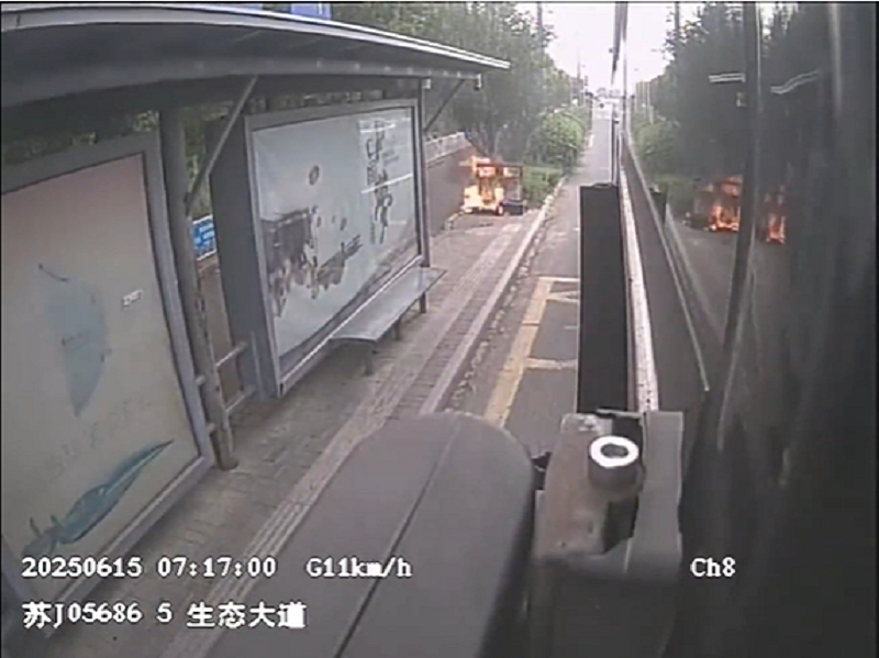 站台垃圾桶起火,公交驾驶员秒变“消防员”