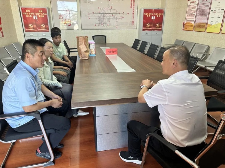 活动当天,分公司管理人员热情接待了刘志军一家。与家属深入交流,询问家庭近况,特别是孩子的学习、生活和成长状况,向吴女士的理解支持致以敬意。为了表达对两个留守儿童的关爱,公司还贴心地为他们准备了精美小礼物,现场洋溢着温馨与感动。