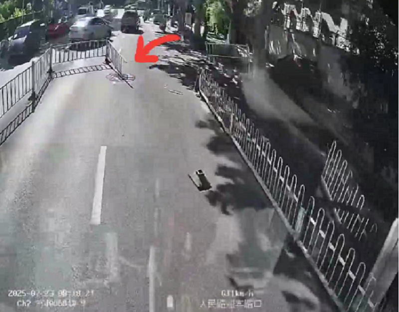发现前方道路中央的隔离护栏损坏