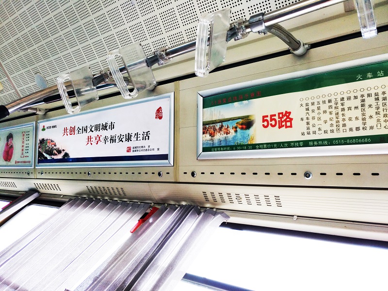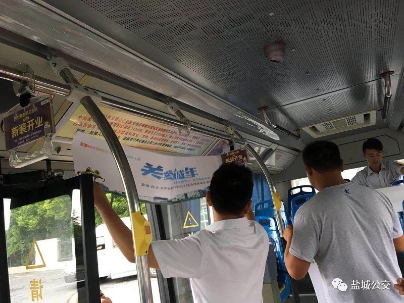 充分利用站台橱窗、车辆LED屏、车载电视、公众微信号、宣传折页等载体开展线上线下宣传,造浓创文氛围。按盐创办(2018)4号文件关于创文宣传提升方案的通知精神,我司重新制作、更新车厢公益广告近1300幅,更新隶属于我司管理的166个公交站台公益广告584幅,各办公场所、停(回)车场增加、更新公益广告150余幅,印发“社会主义核心价值观、盐城市民文明16条”宣传卡片3000余张。目前,车厢各类载体发布的公益广告和公交站台制作的公益广告比例都基本达到市创文宣传要求,成为我市创文宣传的重要平台之一。