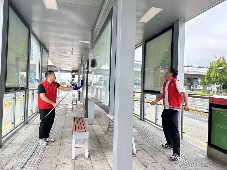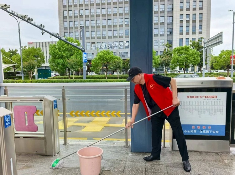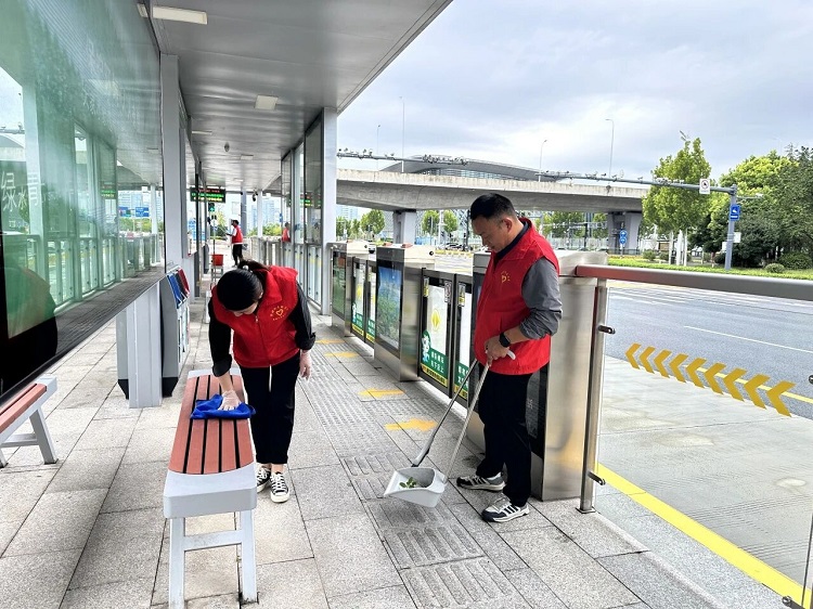 为深化“优选公交 绿色出行”理念,打造洁净、舒心、文明的候车环境,近日,市公交公司组织党员志愿者在国际会展中心站及新都路、东环路沿线4个重点站台开展站台卫生清扫与微笑服务专项行动。20余名身着红马甲的党员志愿者化身“城市美容师”与“服务先锋”,以“清扫+服务”双线并行,让站台既有“洁净颜值”,更添“服务温度”,同时结合线路优化调研,推动服务提质增效。