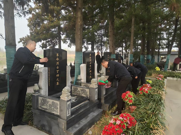 活动现场,庄严肃穆。党员们怀着崇敬的心情,拿起抹布仔细擦拭烈士墓碑,拂去碑上的尘土,让先烈的名字更加清晰醒目。随后,全体党员整齐列队,向革命烈士默哀致敬,表达对先烈们的深切缅怀和无限敬仰。默哀仪式结束后,党员们依次走到烈士墓前,献上手中的鲜花,寄托对先烈们的哀思与敬意。