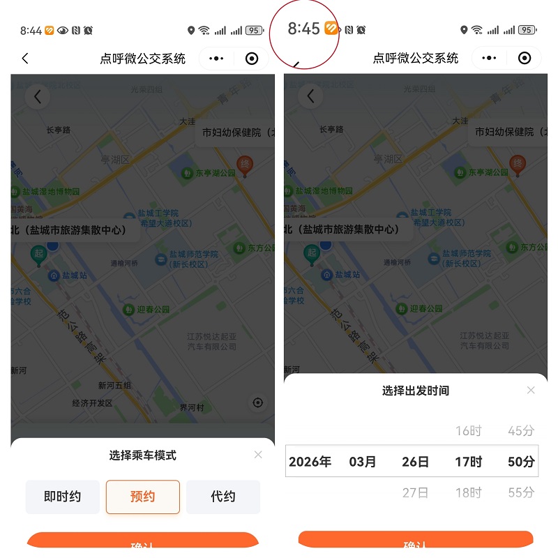 据了解,窦先生老家在东台,两周前因工作调动至盐城,每日需往返两地。起初他选择自驾通勤,却不堪奔波之苦;后来改乘高铁,又遇到盐城高铁站到市妇幼保健院附近单位的“最后一公里”出行不畅、成本偏高问题。一次偶然的机会,他在抖音平台了解到盐城公交推出的“点呼公交”,便尝试使用即时约服务。但由于对预约流程不熟悉,他曾陷入上班迟到或赶不上回家高铁的尴尬处境。