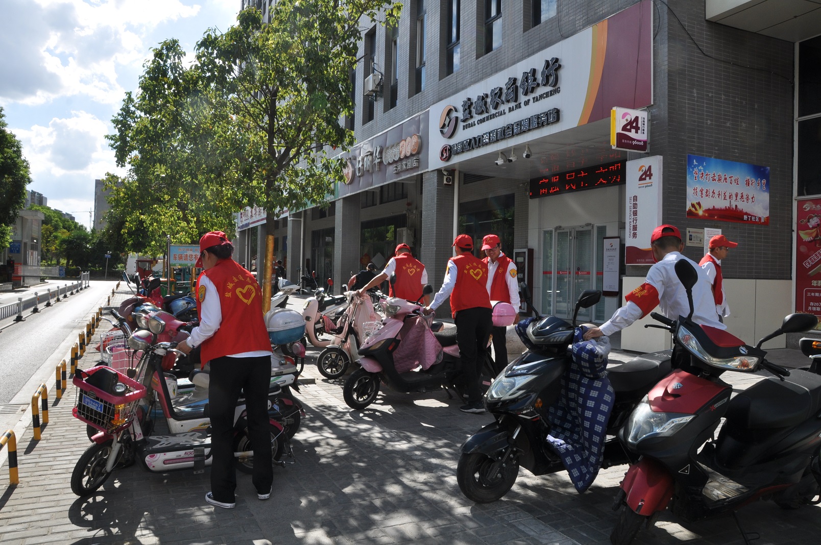 活动中,志愿者们分成两批,一批身穿志愿者红马甲,手臂佩戴文明劝导员红色袖章开展文明交通劝导活动,他们站在十字路口斑马线处,协助维护交通秩序,引导行人和非机动车辆遵守红绿灯信号、走斑马线过马路,帮助行人纠正不文明交通行为。此外,他们还帮助维持路边非机动车辆停放秩序,把车辆摆放在指定停车线内,让车辆停放得井然有序!