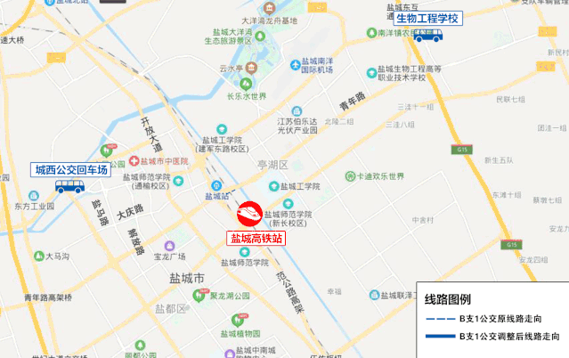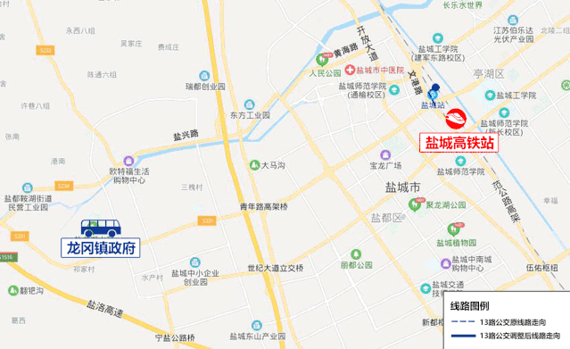 线路走向:西环路、东进路、解放路、青年路、盐城高铁站
