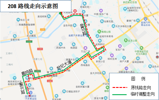 因黎明路(世纪大道至鹿鸣路)8月5日至8月17日期间封闭施工,8月5日起,市公交公司将临时调整公交208路线调整走向,由原世纪大道、方向路、鹿鸣路、世纪大道、振兴路行驶,调整为世纪大道、方向路、鹿鸣路、振兴路行驶,临时绕道期间暂不停靠:马沟小学站。