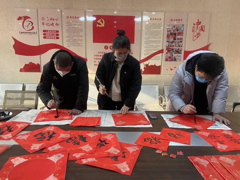 寄美好祝福 待春暖花开。为鼓舞斗志,凝心聚气,21日上午,驾驶员朱茂同、管理人员王星云、董磊、王冲四人现场书写祝福,一个个寓意着平安喜乐的字,饱含着他们对一线人员的美好祝福。