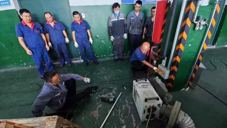 演练开始前,修理公司安全副经理孙超强调了演练注意事项,要求演练人员严格按照预案进行演练。此次演练模拟了修理人员在车间进行切割作业时,由于电源线老化导致绝缘皮破损引起配电箱带电,一名修理工在打开配电箱时触电倒地的危急情况处理。