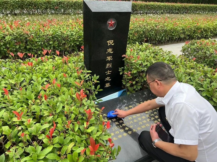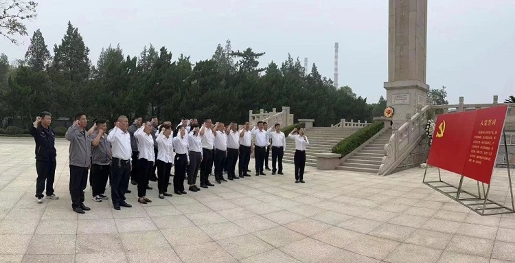 青山静默,松柏凝翠。在烈士纪念碑前,全体人员肃立脱帽,怀着崇敬之情,通过敬献花圈、鞠躬默哀、重温入党誓词、擦拭墓碑等形式,寄托哀思怀念,表达崇高敬意。